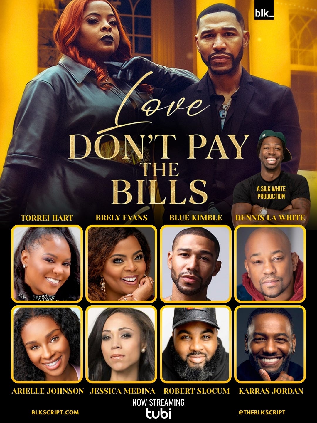 Led by a powerhouse ensemble cast, Torrei Hart, Brely Evans, Blue Kimble, Dennis LA White, Arielle Johnson, Jessica Medina, Robert Slocum, Karras Jordan, and more. Love Don’t Pay The Bills arrives as one of the most anticipated releases of “Lover’s Month,” delivering a fresh, modern take on the price of love in a world where every choice comes with consequences. Generating early buzz across entertainment insiders, streaming analysts, and fans of Silk White’s cult-followed storytelling universe.